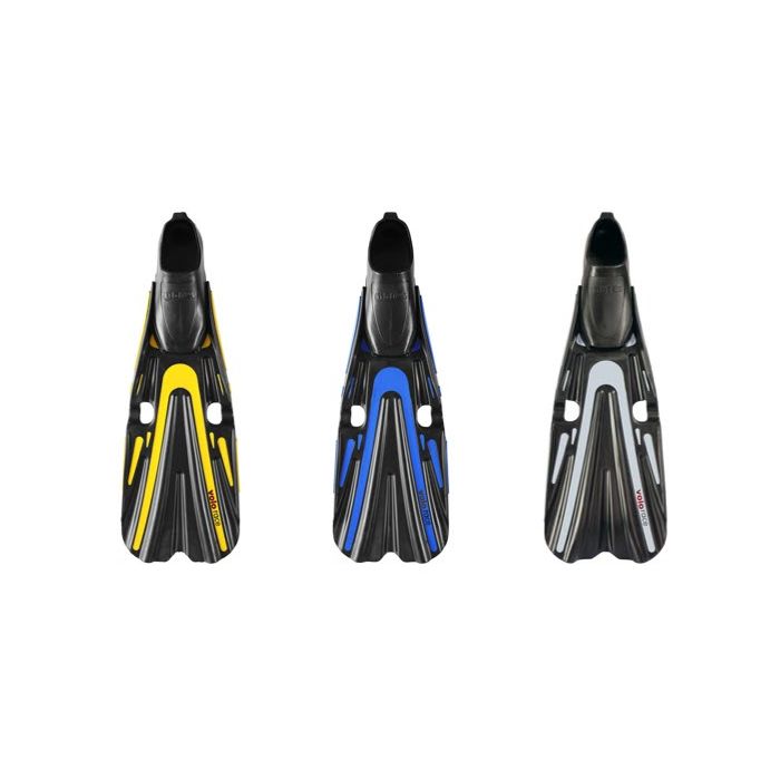 Les palmes de plongée Volo Race ont une longueur de pelle qui varie de 33,5 à 39,5 cm selon la taille. Les palmes ont un chausson fermé et anatomique. Les inserts longitudinaux souples permettent une déformation contrôlée de la lame lors du palmage. La forme du canal déplace plus d'eau, créant plus de poussée avec le même effort. La puissance musculaire est ainsi transformée en poussée propulsive.
