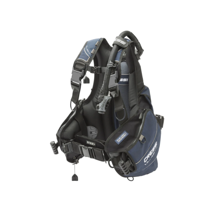 L'Aviator est une veste compensatrice complète B.C.D. comportant de nombreux accessoires et poches pour outils mais réalisé avec une structure classique conçue pour le voyage.